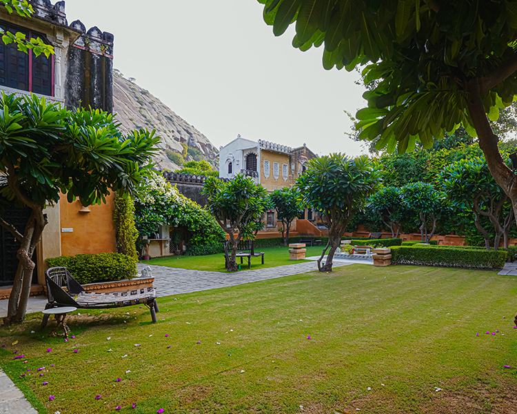Located in a discreet corner of our villa property and offering commanding views of the Aravalli hills and lush greenery, The Tekri is the perfect venue to enjoy a barbeque evening. Take a breather in this transcendent setting, while our chef concocts exotic barbeque specialties at your convenience!